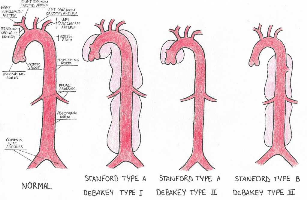 Two systems are widely used to classify aortic dissections: the Stanford model, and the DeBakey (named after the inventor of the surgery for aortic dissections) model.