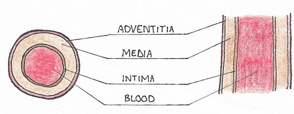 Schema presenting the three layers of the aortic wall